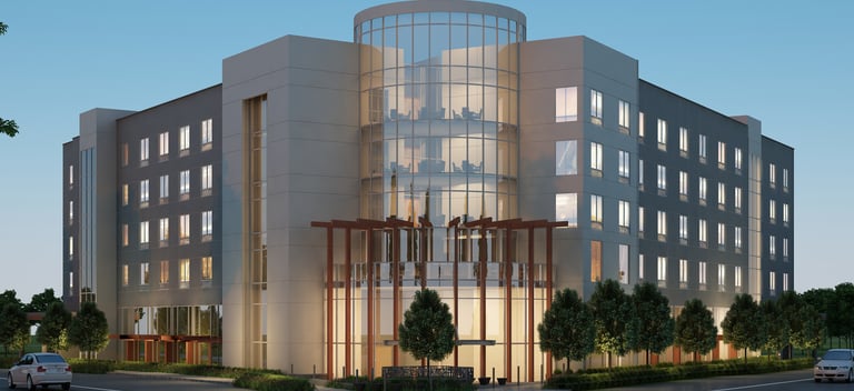 Situated at 1200 St. North Davis Road Salinas California two hotels are proposed on the site - Springhill Suites by Marriott and Hotel Suites. These four-story hotel buildings are oriented to get maximum room counts within site constraints. The building design and color scheme had to be cohesive with the already built environment around the site to get the approvals of the local Planning department.