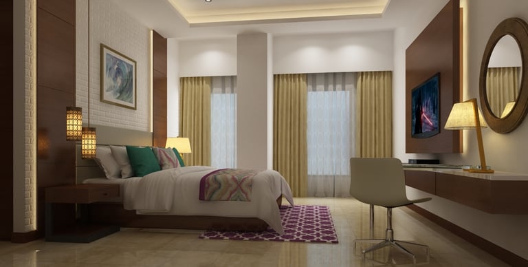 The interior design of a hotel is a story that runs throughout the building with interconnected spaces and design elements. The color palettes have to be current and yet have to be relevant through time. Sculpture forms of the Interior elements such as reception counters, partitions, or buffet setups draw the focus or become the pivot of the character of the interior space. Functional relevance has to be the core of Hospitality Interior Design. Space planning and Interior Designing an existing building is always challenging. The challenge is to study the dynamics of the existing volume and environment of the building.